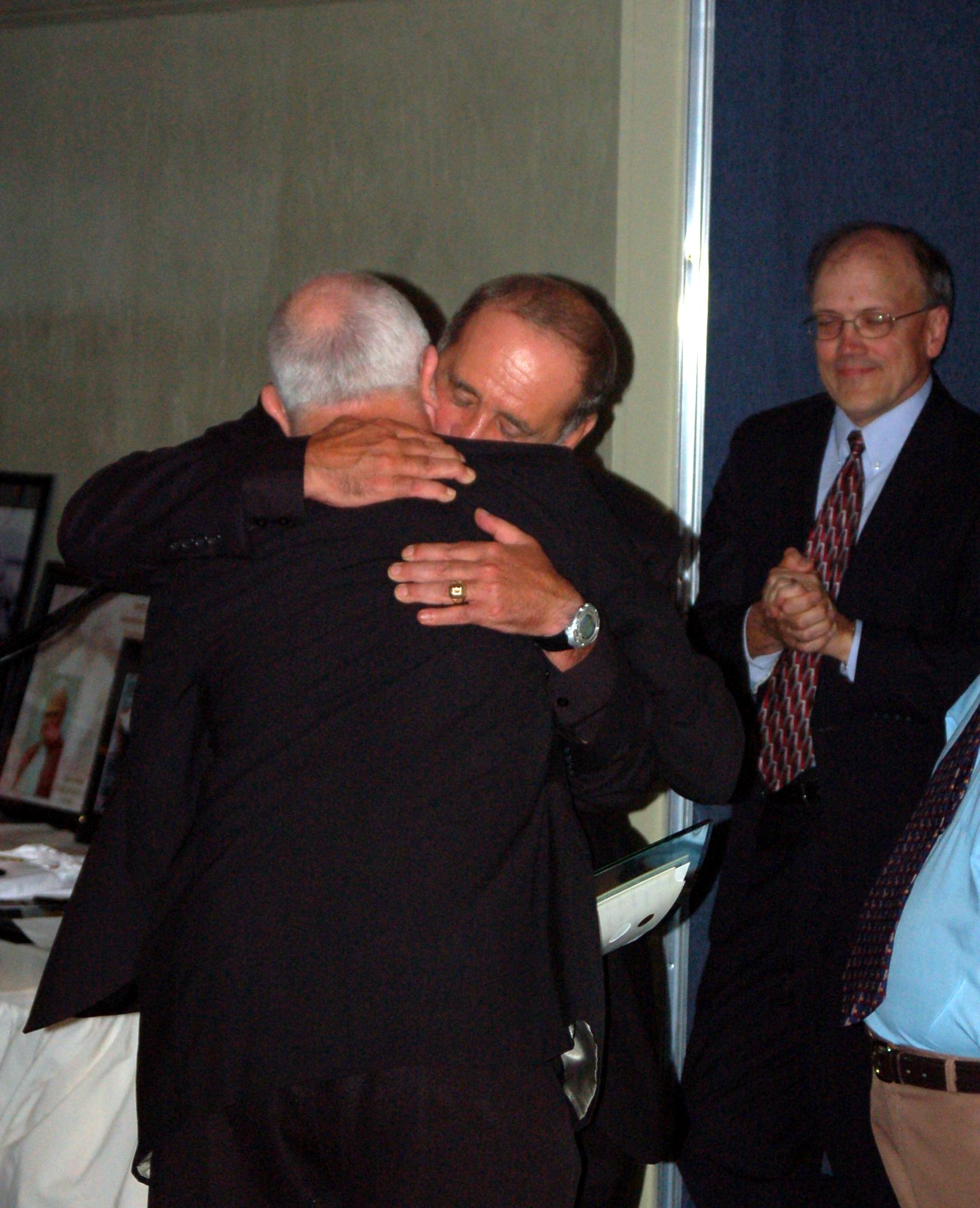 Fr. Lou Vallone, '65, presents the award to Fr. Albert J. Semler. Fr. Semler's first assignment was Parochial Vicar at St Mary of the Mount on Mt. Washington. From 1967 to 1971, Fr. Semler was Assistant Director of Vocations, and from 1972 to 1980 was Director of Vocations for the Diocese of Pgh. Through the years, Fr. Semler has been Pastor and/or Administrator for various parishes in the Pittsburgh Diocese. He was Director of the Missions Office from 1975 to 1977, and Director of Clergy Personnel from 1996 to 1997. Fr Semler has also been Moderator of the Diocesan Council of Catholic Women from 1983 to 1993, member of The Clergy Personnel Board from 2002 to 2004, and presently is a Consultor in the College of Consultors, and an appointed Member of Catholic Charities. Fr. Semler is presently Parochial Vicar at St. John of God Parish in McKees Rocks, PA.